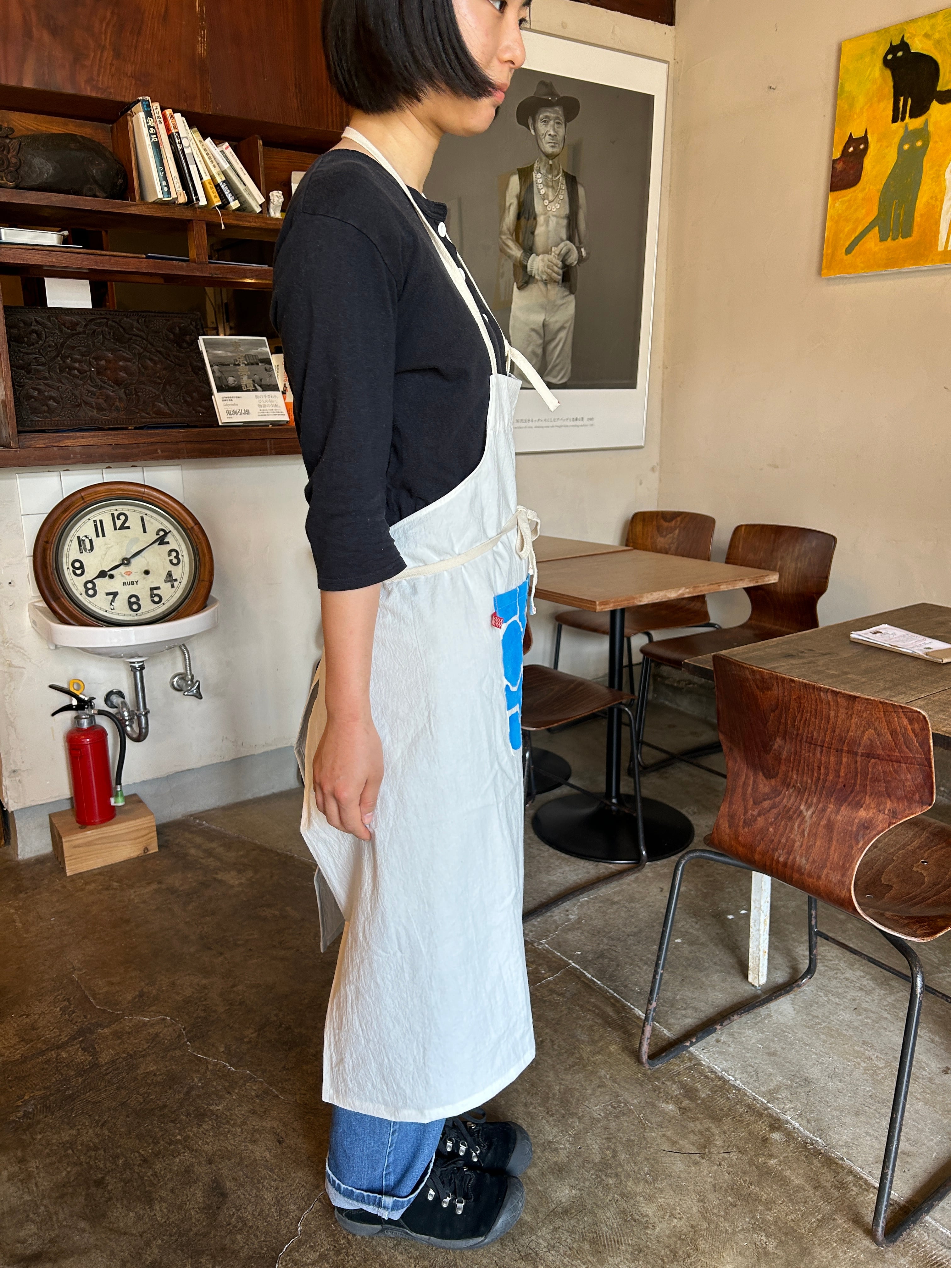 リネンハンドペイントエプロン 青